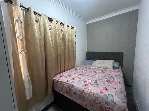 Conta com sala, cozinha, dois dormitórios e uma vaga de garagem. O prédio não possui elevador.