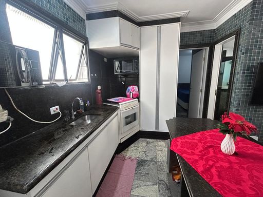 Apartamento originalmente de 1 dormitório, transformado em 2 dormitórios, localizado na avenida da praia, no bairro Jardim Real, em Praia Grande. O imóvel possui uma planta simples e funcional, com ambientes bem aproveitados.