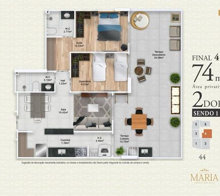 74,19 m² área útil
