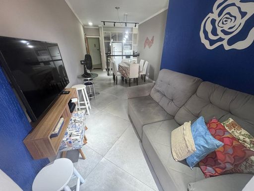 Apartamento localizado no bairro Vila Tupi, em Praia Grande, ideal para quem busca conforto e praticidade a poucos minutos do mar. O imóvel possui 2 dormitórios, sendo 1 suíte, ambientes bem distribuídos e ótima iluminação natural. Conta com sacada, sala aconchegante integrada à cozinha americana, que dispõe de móveis planejados, oferecendo funcionalidade e aproveitamento inteligente dos espaços.