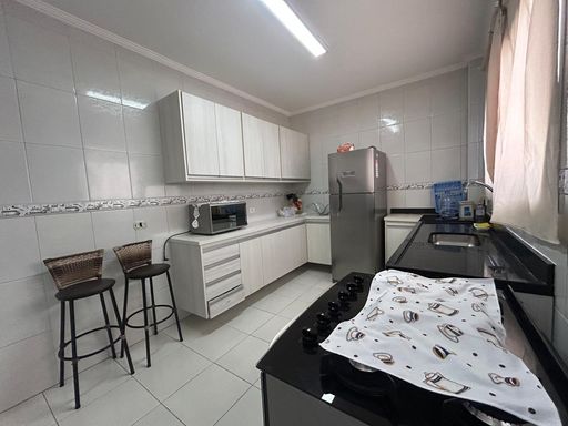 Apartamento impecável à venda no bairro da Tupi, em Praia Grande. São 82 m² de área útil, distribuídos em 2 dormitórios, sendo 1 suíte, além de 2 vagas de garagem. O imóvel está totalmente mobiliado (saem apenas itens pessoais) e conta com sacada envidraçada e churrasqueira a carvão, ideal para momentos de lazer.