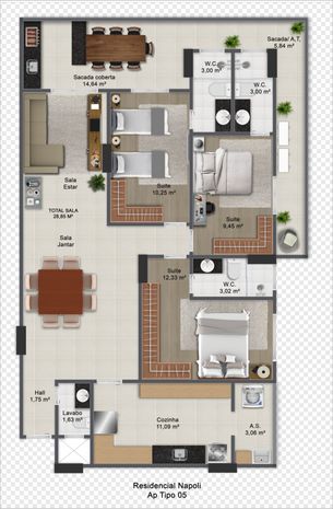 3 Suítes